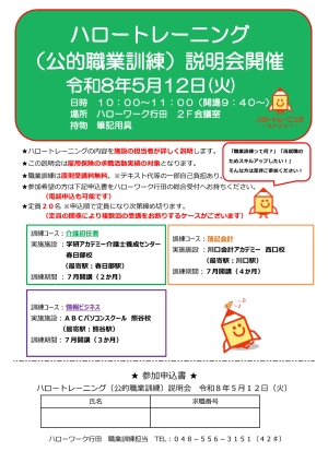 5. 【行田】5月12日(火)に「職業訓練説明会」を開催します!