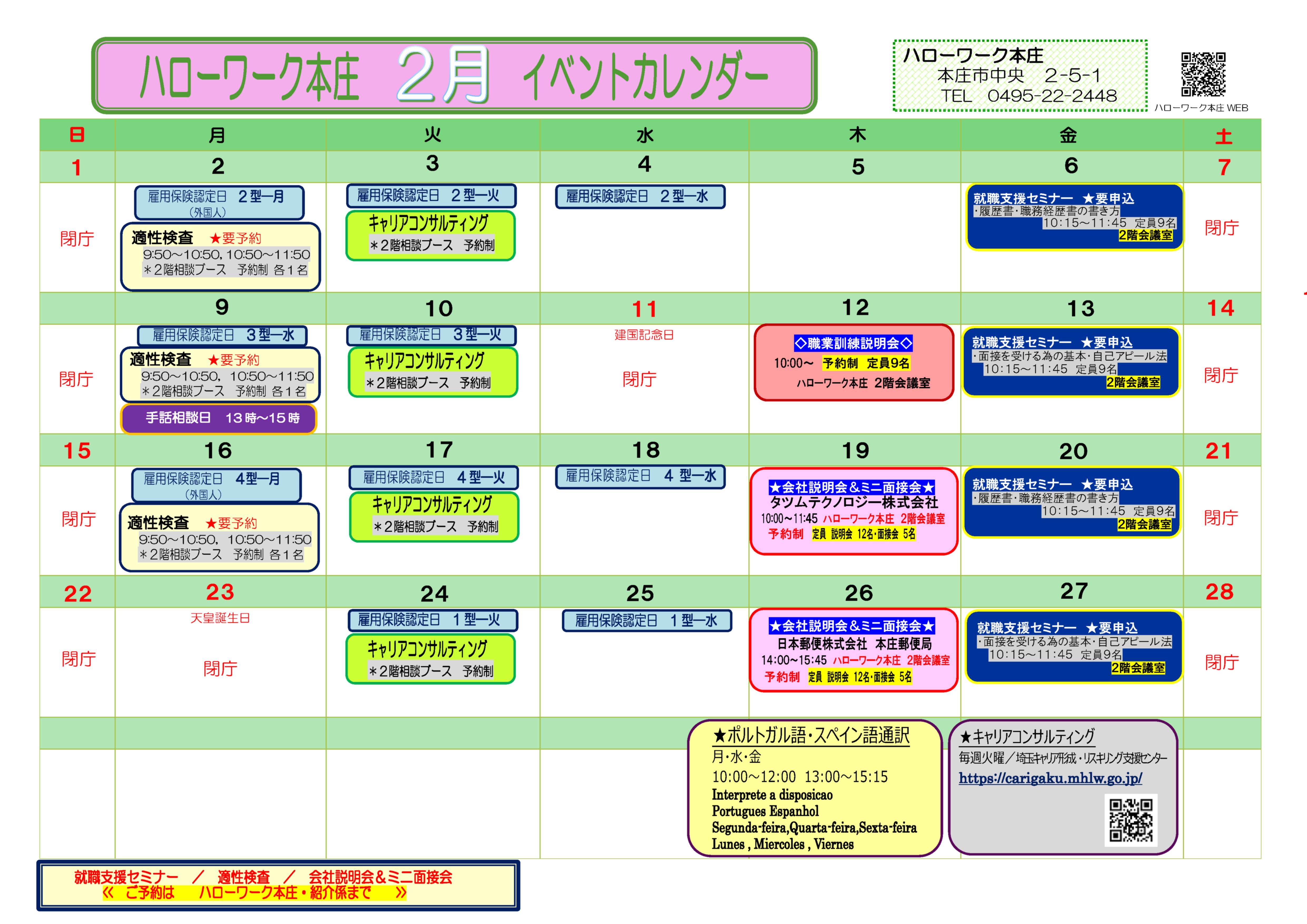 5. 【本庄】イベントカレンダー2月