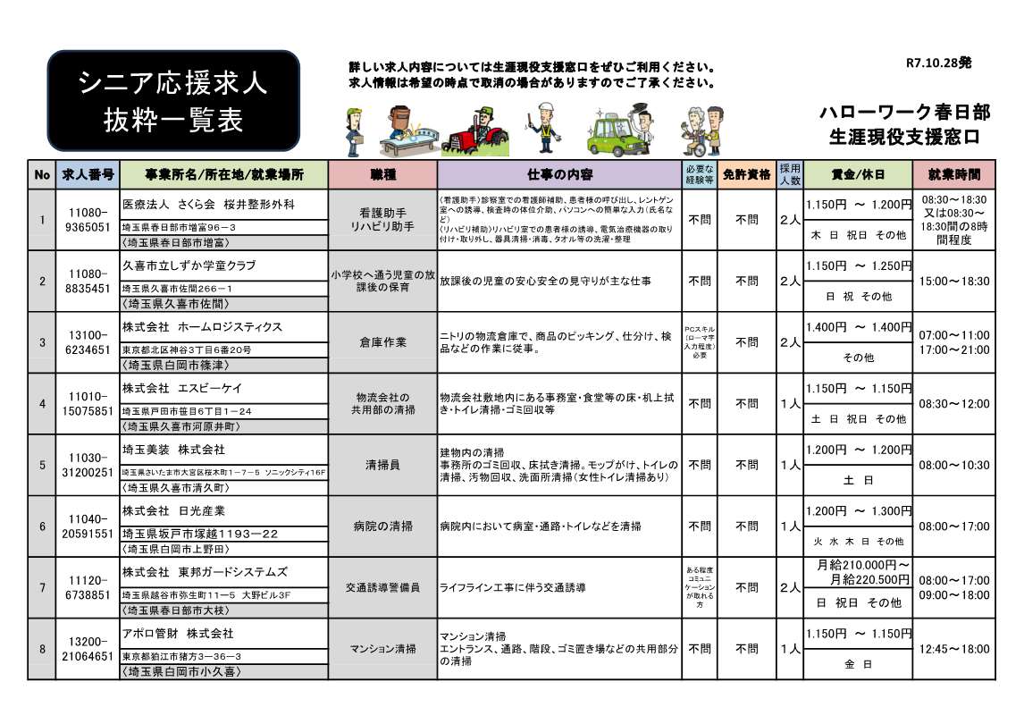 ※リンク先の不具合がございましたら、ハローワーク春日部(求人部門)TEL:048-615-9225(31#)までご連絡ください。