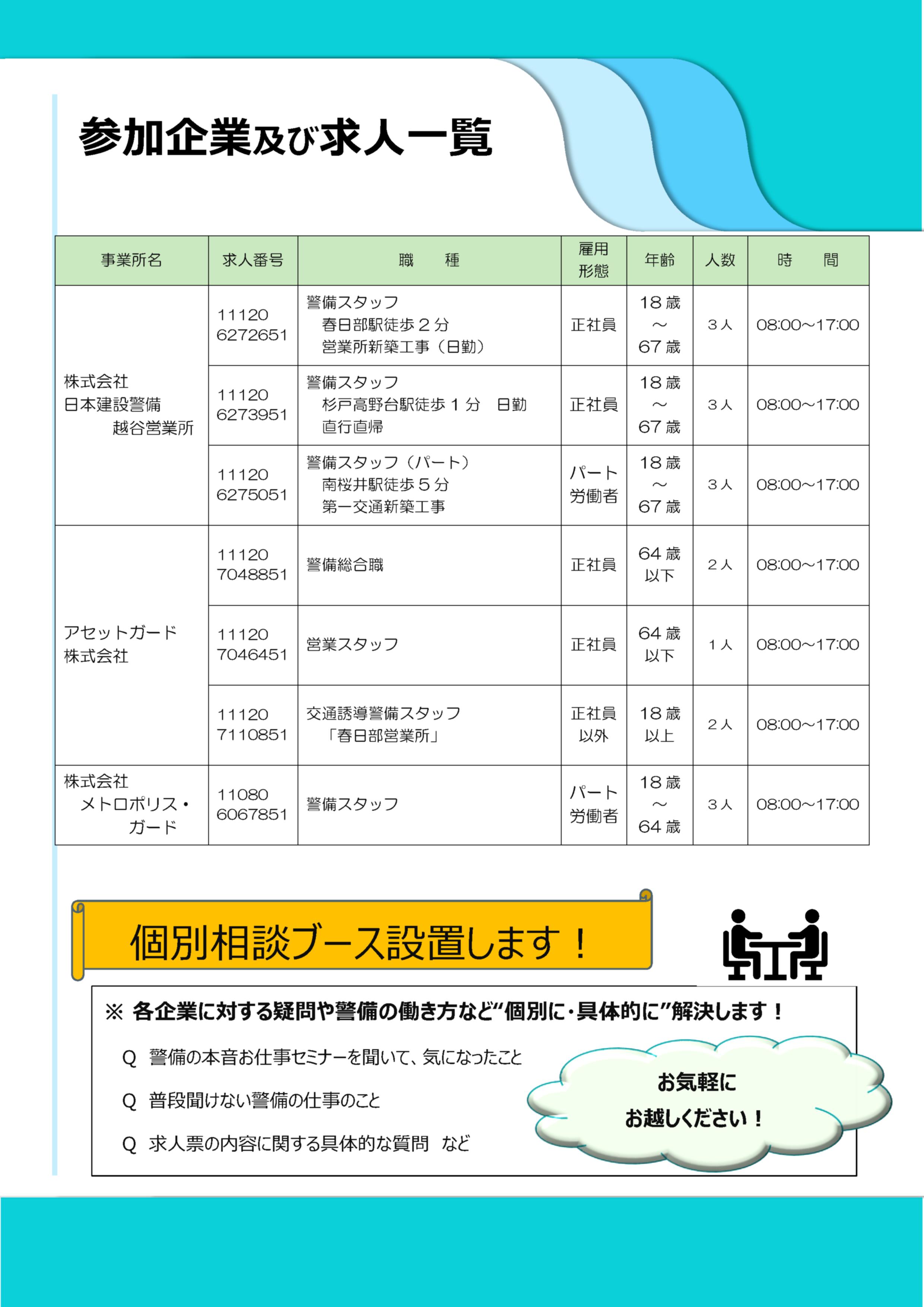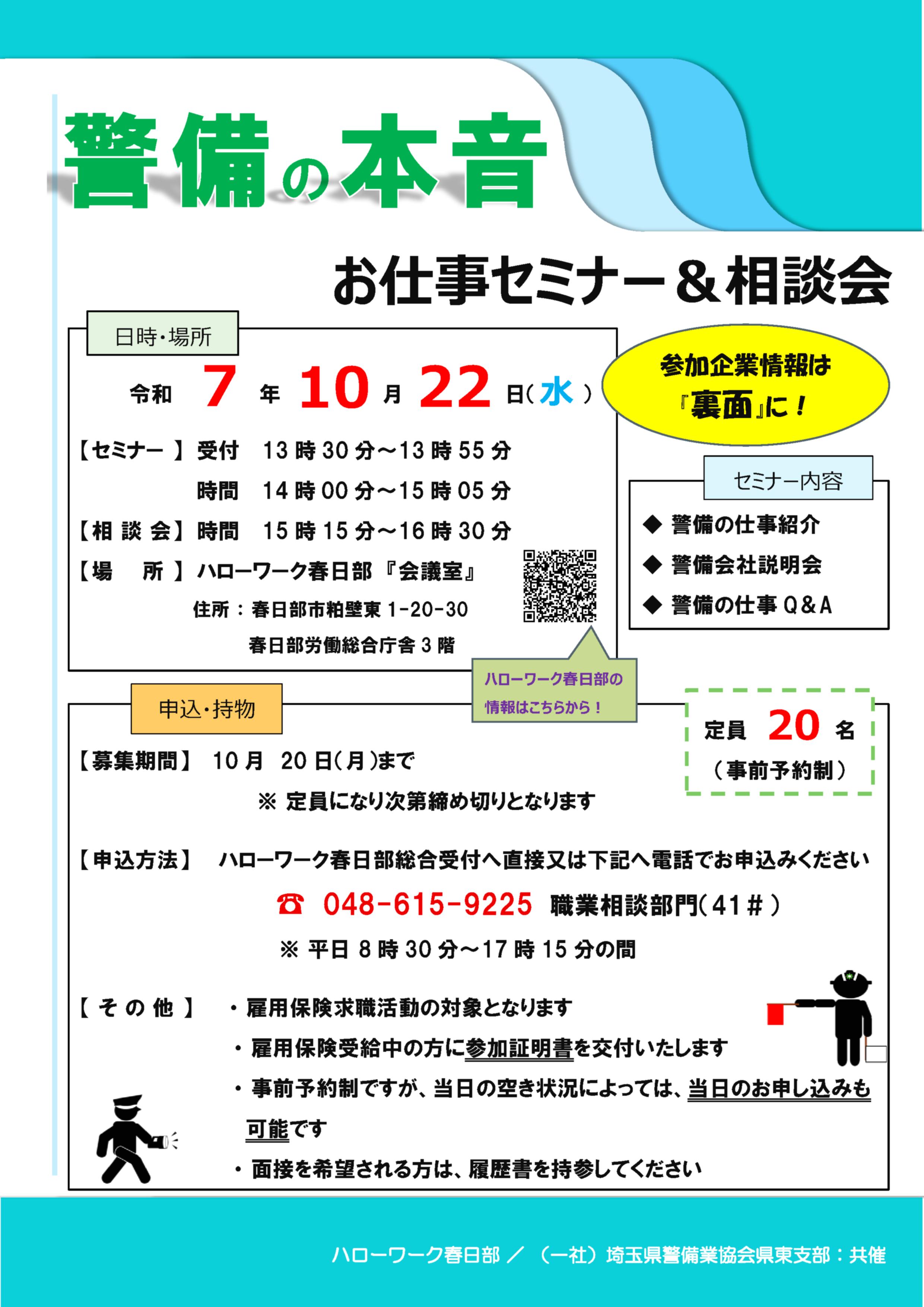 5. 【春日部】令和7年10月22日(水) 警備の本音 お仕事セミナー&相談会を開催します