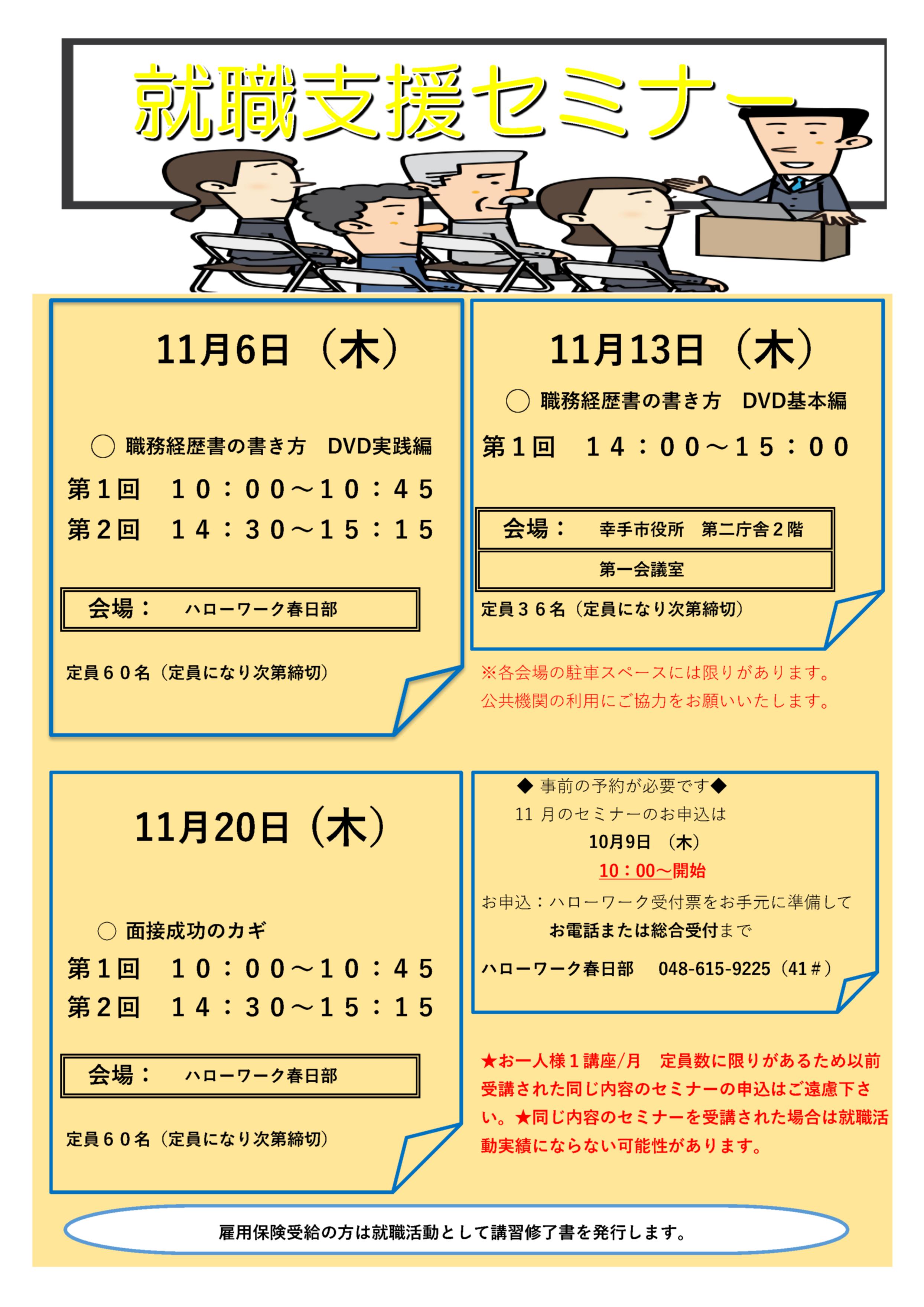 春日部所主催 就職支援セミナー等のお知らせについて(令和7年11月分)