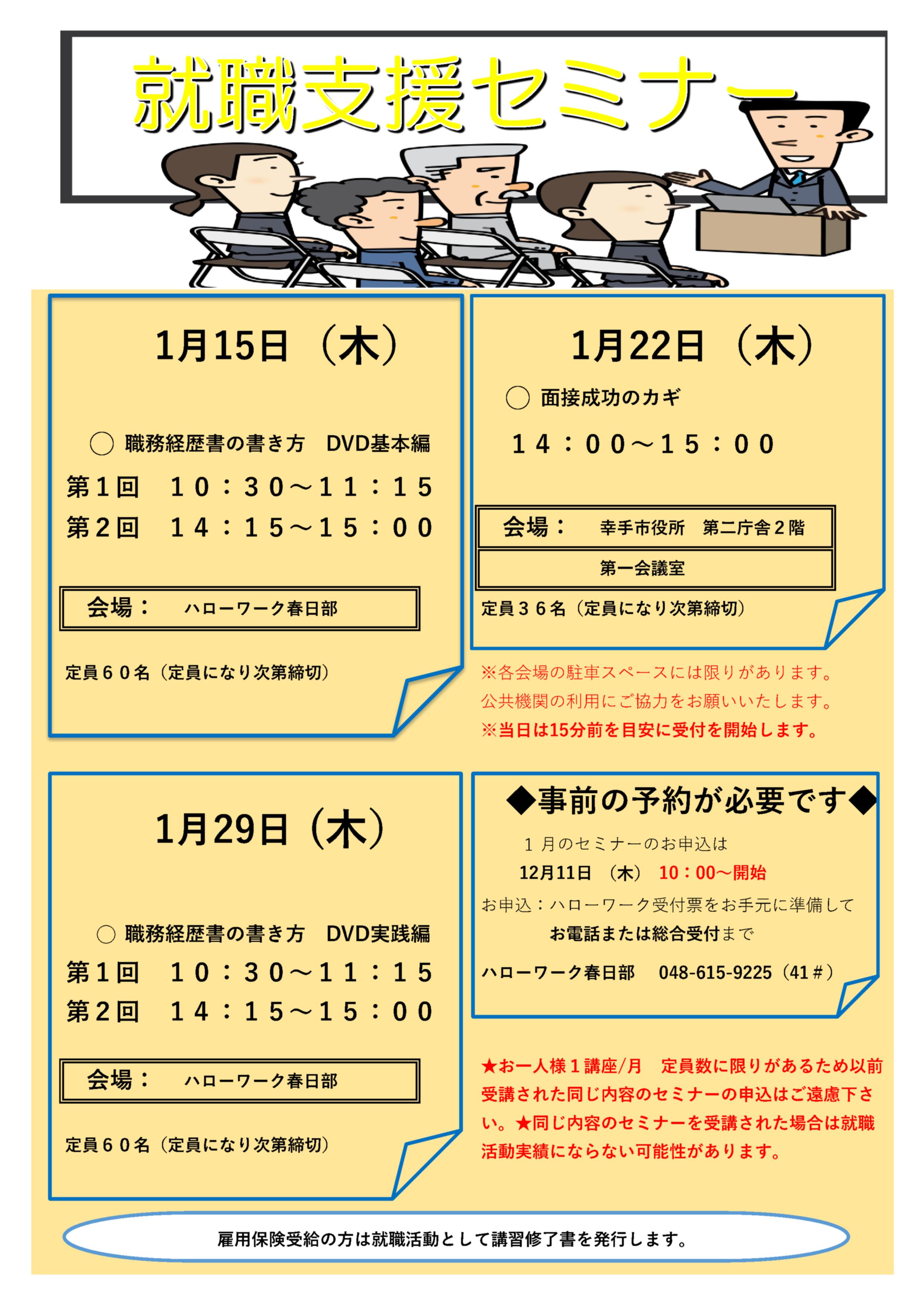 5. 春日部所主催 就職支援セミナー等のお知らせについて(令和8年1月分)