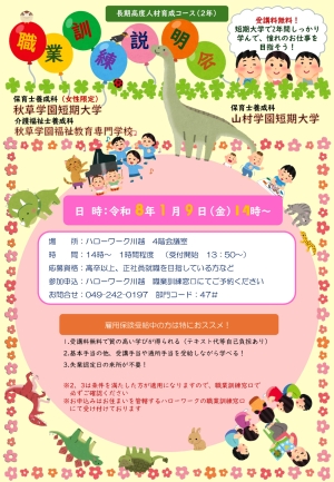 【川越】R8年1月9日(金)に保育・介護系職業訓練の説明会を開催します!