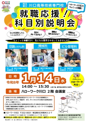 【川口】1月14日(水)ハロートレーニング(職業訓練)説明会(川口高等技術専門校・体験付き)を開催します