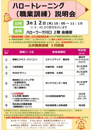 5. 【川口】3月12日(木)ハロートレーニング(職業訓練)説明会を開催します