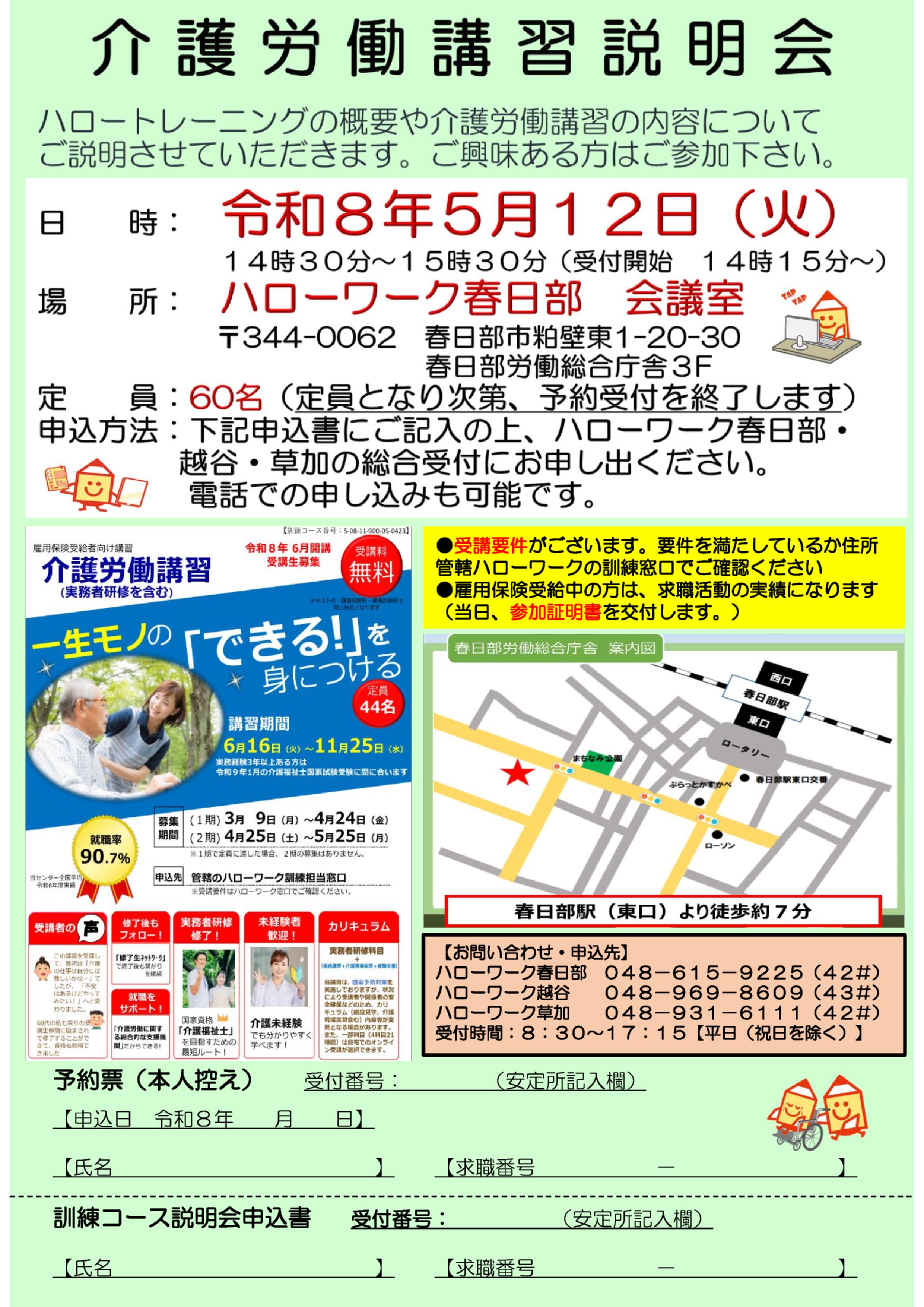 【越谷】 5月12日(火)に介護労働講習説明会を開催します!(会場:ハローワーク春日部)