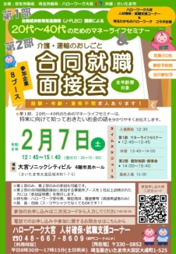 【大宮】2月7日(土)「20代~40代のためのマネーライフセミナー&介護・運輸のおしごと 合同就職面接会」を開催します!