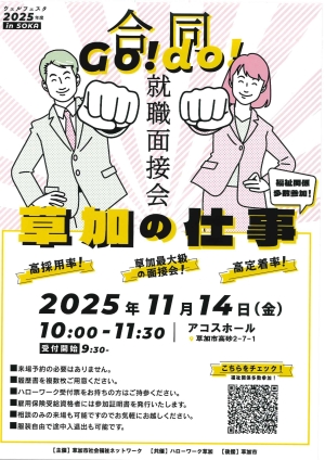 【草加】11月14日(金)「ウェルフェスタ in SOKA 合同就職面接会」を開催します。