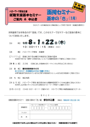 【草加】 令和8年1月22日 (木) 就職支援基本セミナー 「面接セミナー 基本の『き』」 を開催します!