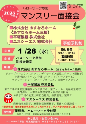 5. 【草加】1月28日(水)マンスリー面接会を開催します!