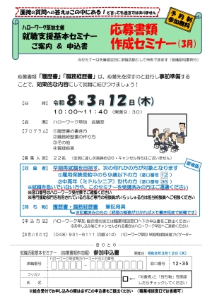 【草加】 令和8年3月12日 (木) 就職支援基本セミナー 「応募書類作成セミナー」 を開催します!