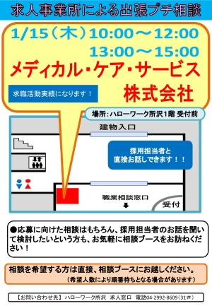 5. 【所沢】1/15(木)メディカル・ケア・サービス株式会社による出張プチ相談を開催します!