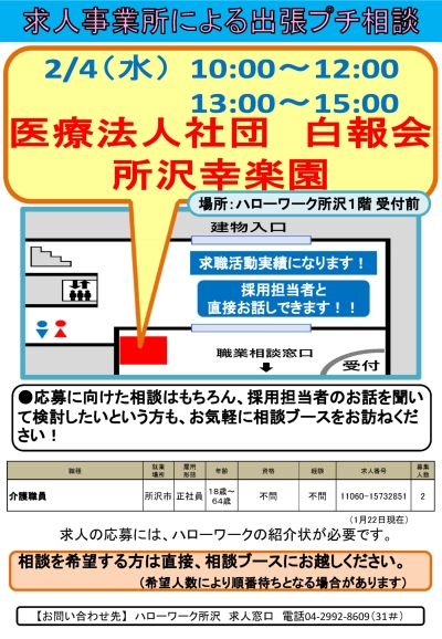 5. 【所沢】2/4(水) 医療法人社団 白報会 所沢幸楽園による出張プチ相談を開催します!
