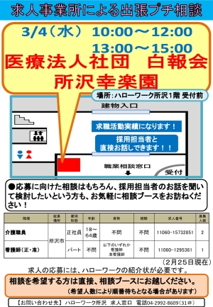 5. 【所沢】3/4(水) 医療法人社団 白報会 所沢幸楽園による出張プチ相談を開催します!
