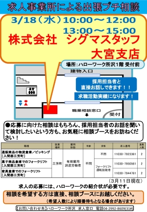 5. 【所沢】3/18(水) 株式会社シグマスタッフ 大宮支店による出張プチ相談を開催します!