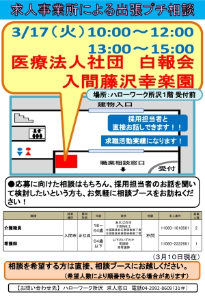 5. 【所沢】3/17(火) 医療法人社団 白報会 入間藤沢幸楽園による出張プチ相談を開催します!