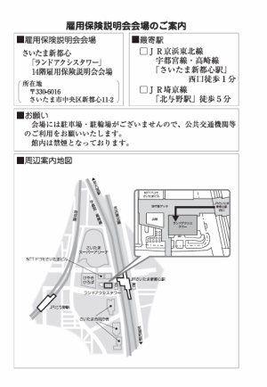 | 【会場】 | さいたま新都心「ランドアクシスタワー」 14階雇用保険説明会会場 |
