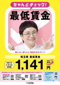| 埼玉県最低賃金 | 1,141円 | 埼玉県内の事業場で働く全ての労働者(特定最低賃金の適用業種で働く労働者で、適用が除外される者も含む) |