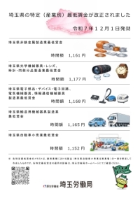 現在、埼玉県の区域内では、5件の最低工賃が定められています。