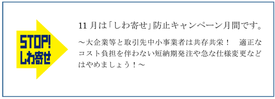 11月は「しわ寄せ」防止キャンペーン月間です。