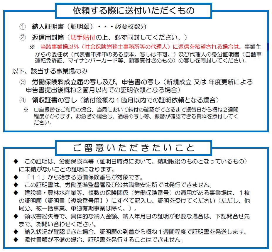 - 労働保険料等納入証明書をご依頼される皆さまへ