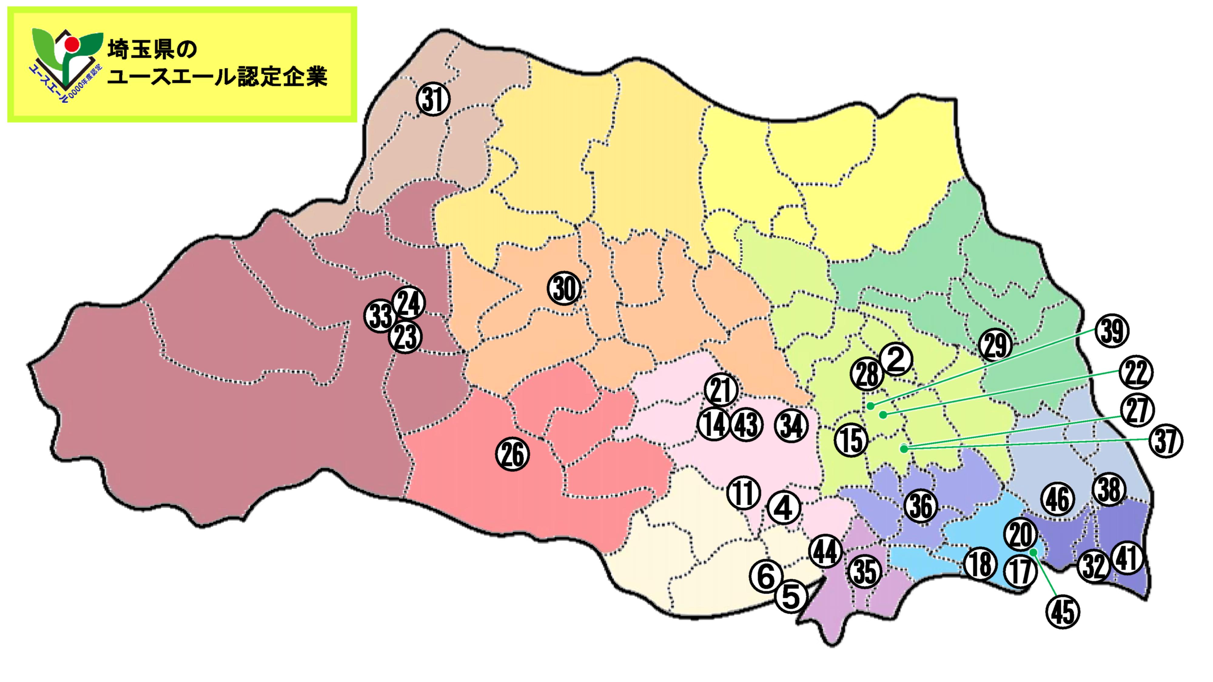 | ■埼玉県内のユースエール認定企業を地図に表記しています。 また、【認定企業一覧】に企業PR動画を掲載していますので、サムネイルをクリックしていただきご覧下さい! |