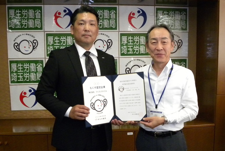 『もにす認定』障害者雇用優良中小事業主認定通知書交付式を行いました。 <株式会社 ウイズリサイクル> |