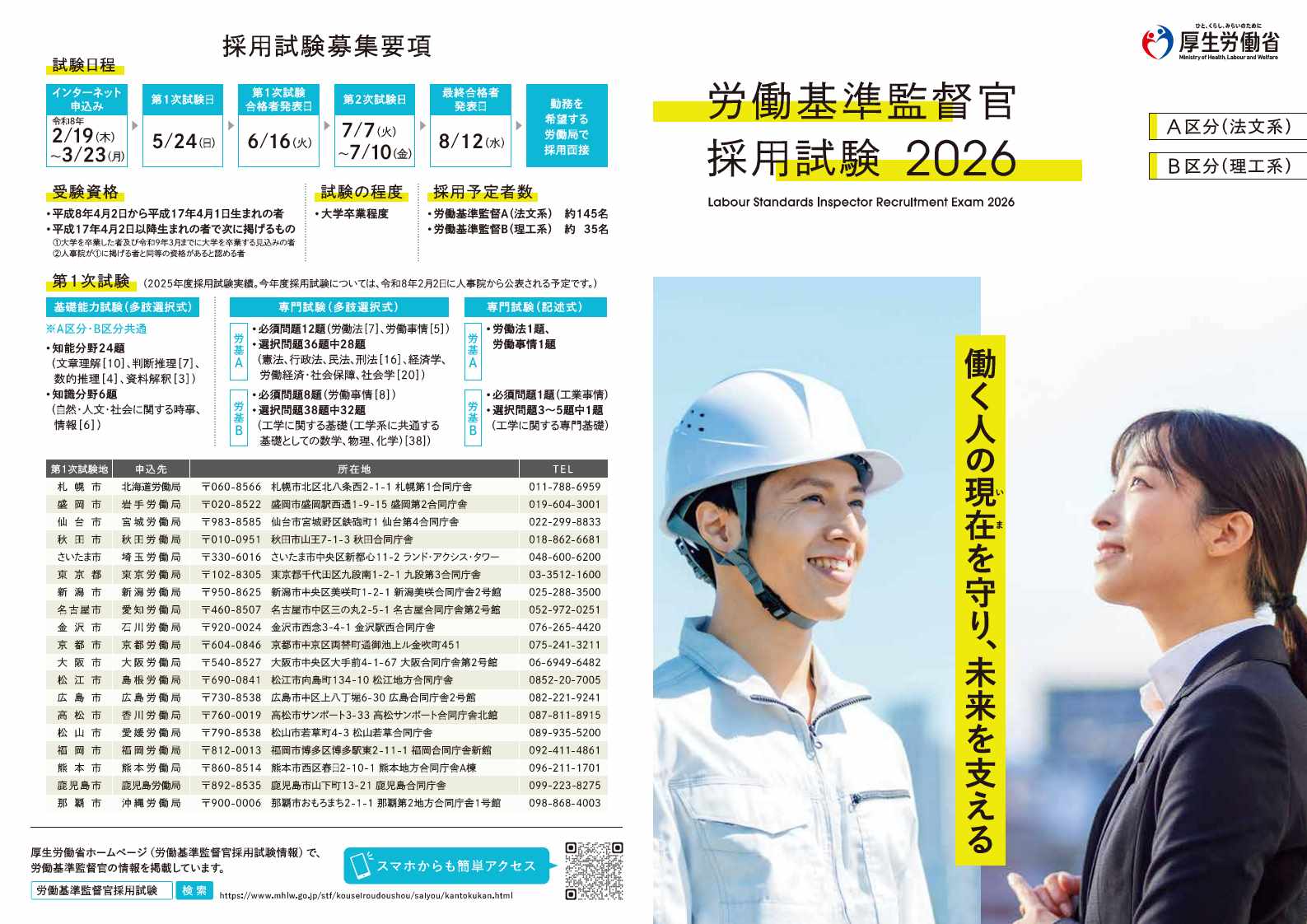 2026年度労働基準監督官採用試験第1次試験合格者向けの説明会開催については、2026年5~6月頃にご案内する予定です。