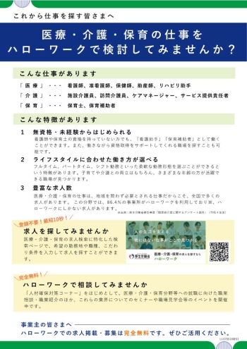 滋賀労働局・ハローワークは、医療・福祉分野各機関と連携し、皆さんの就職をサポートします