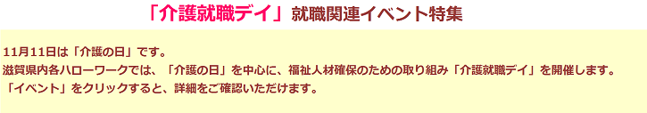 | ハローワーク東近江 | 介護・福祉の職場ガイダンス | 11月5日(水) | ハローワーク 東近江 0748-22-1020(41#) |