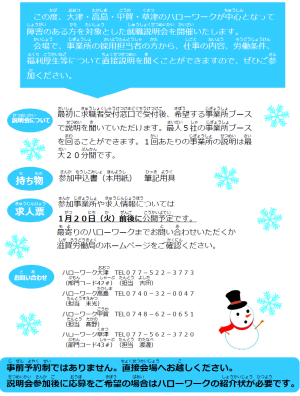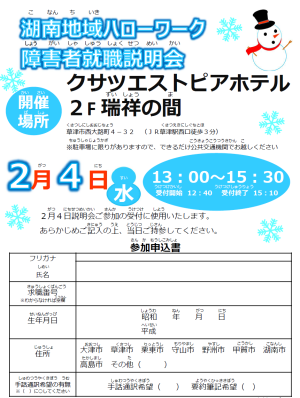 □令和8年2月4日(水)に湖南地域障害者就職説明会を開催します!