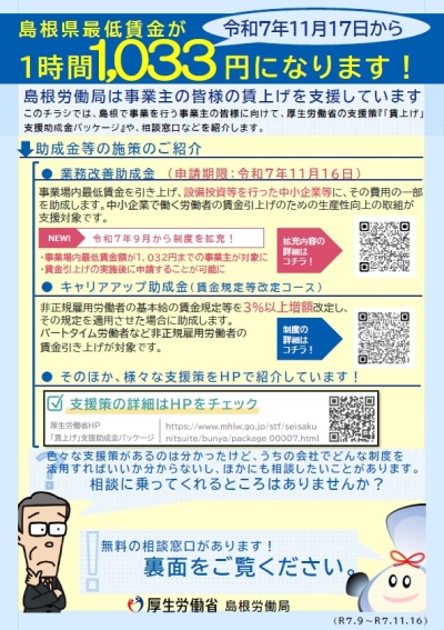※ 詳しくは、島根労働局賃金室(TEL:0852‐31‐1158)又は最寄りの各労働基準監督署にお問い合せください。