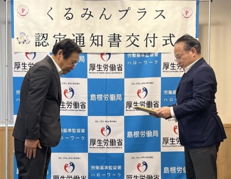 島根県内で21社目の『くるみん』認定企業となり、新基準でのくるみん認定は島根県初となります。
