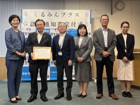 令和7年8月26日に島根中央信用金庫(出雲市)を新基準での『子育て・不妊治療サポート企業』として『くるみんプラス』認定し、令和7年9月25日にくるみんプラス認定通知書交付式、意見交換会を行いました。