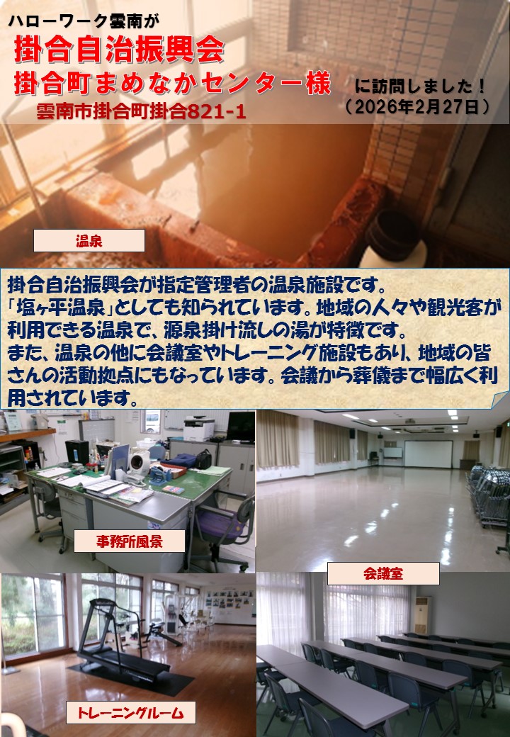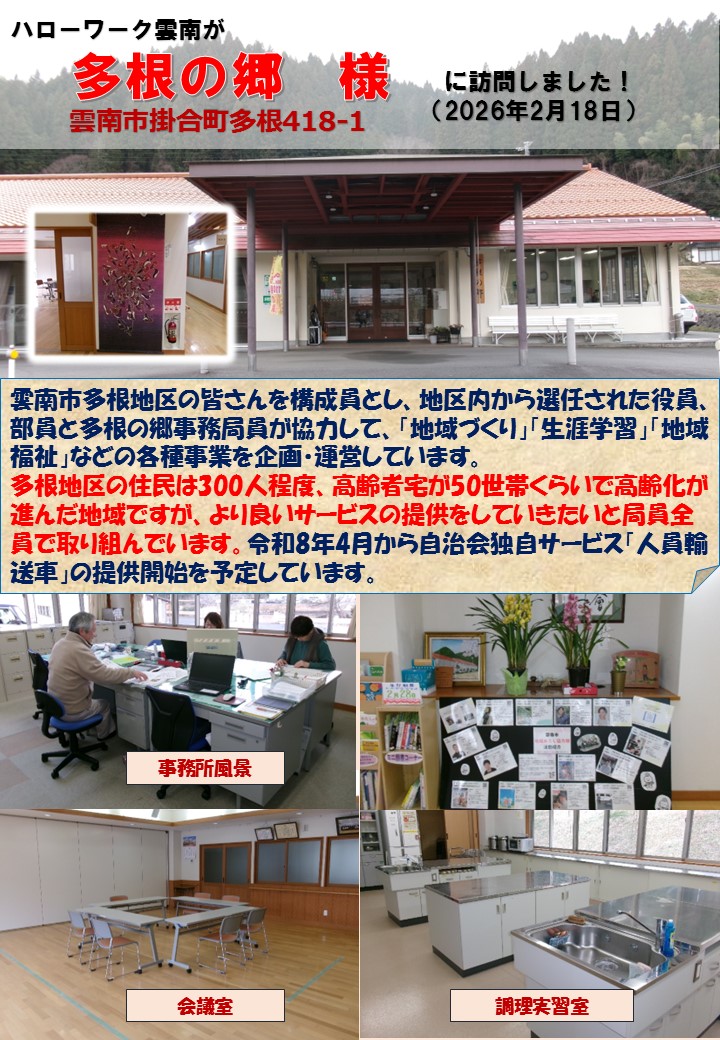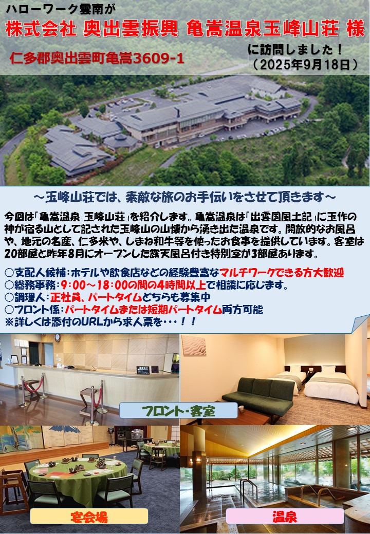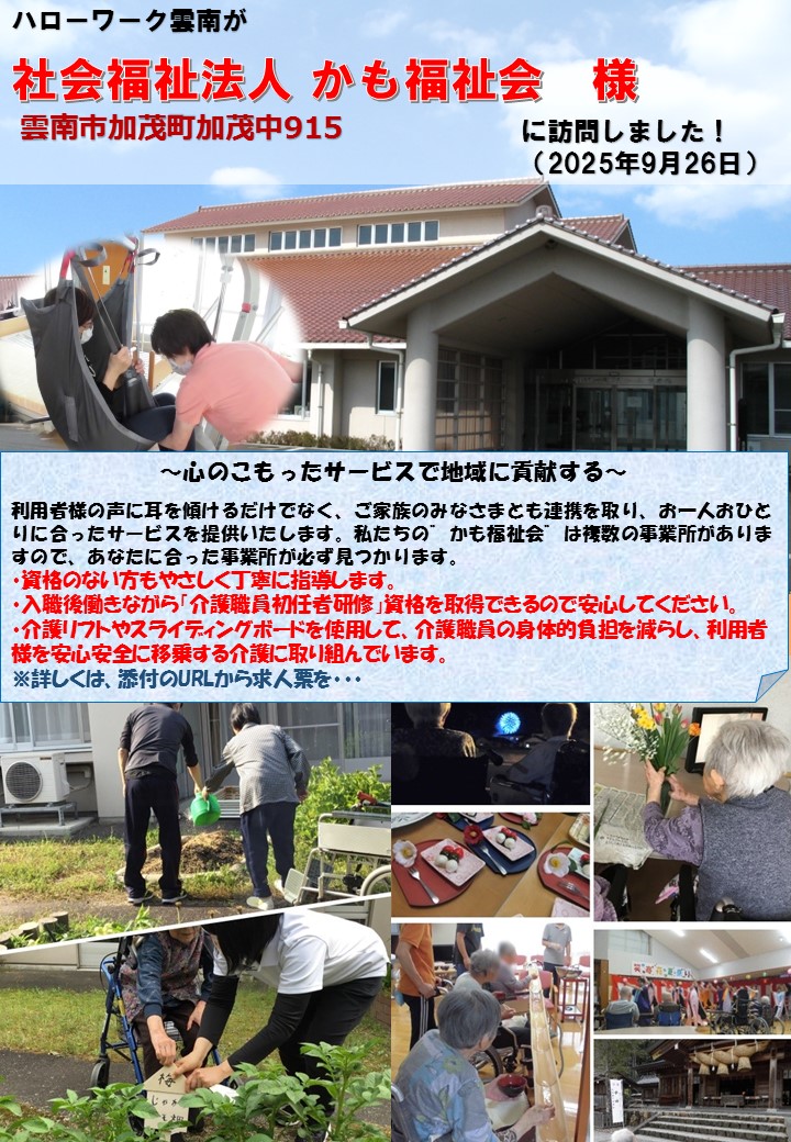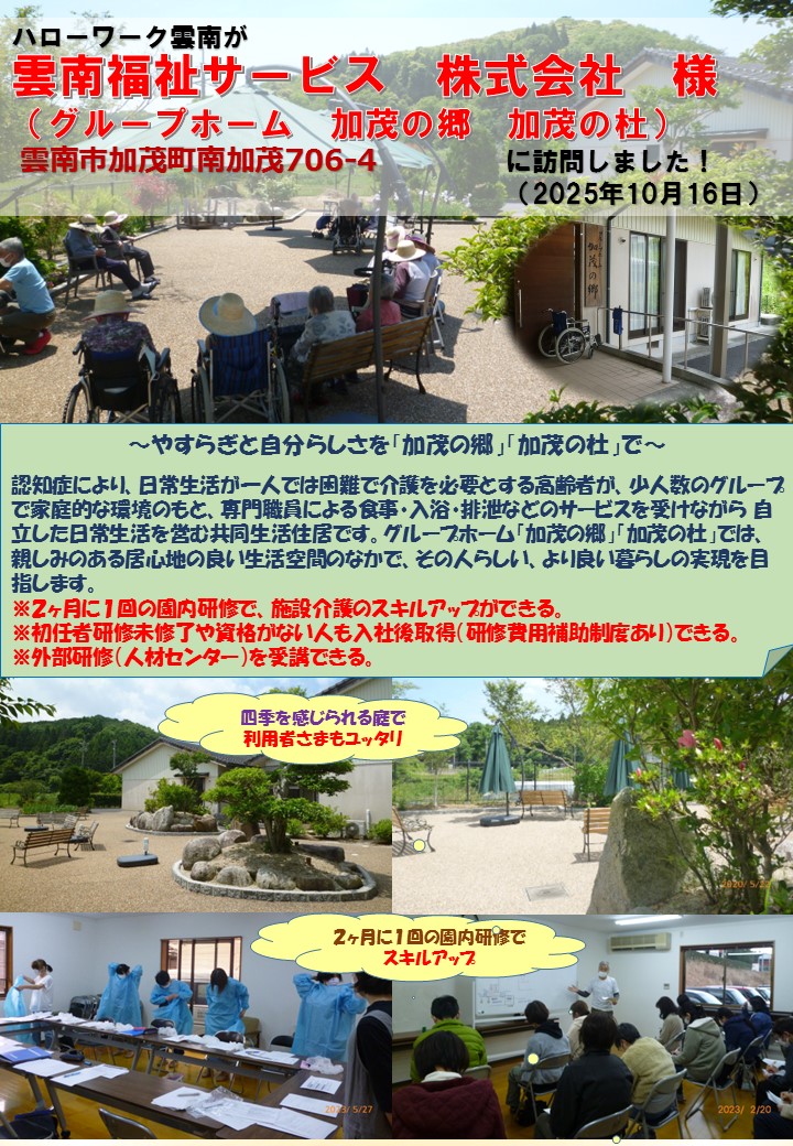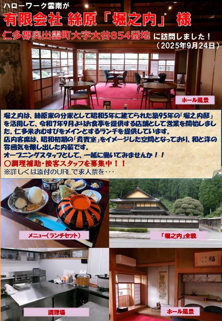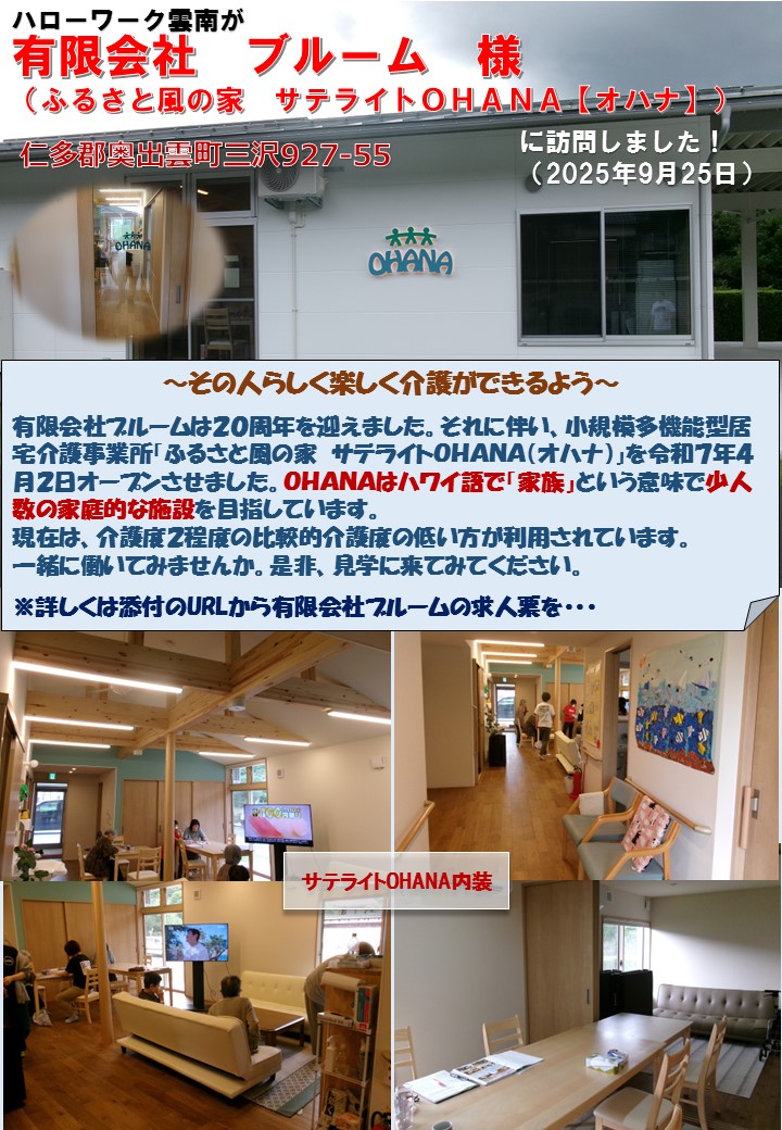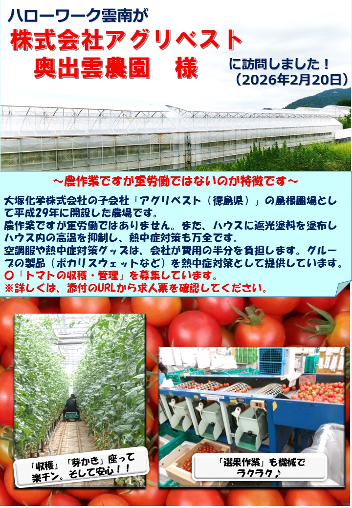 なお、応募・見学希望やご不明点等はお気軽にハローワーク雲南にお問い合わせください♪