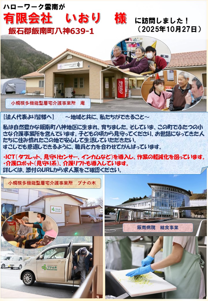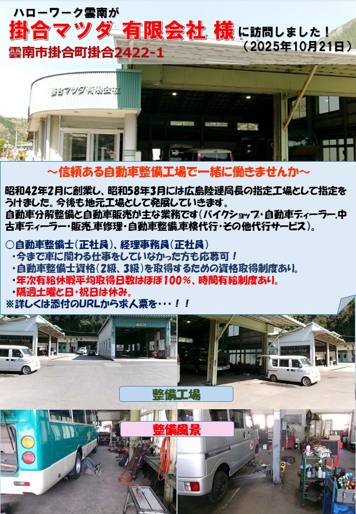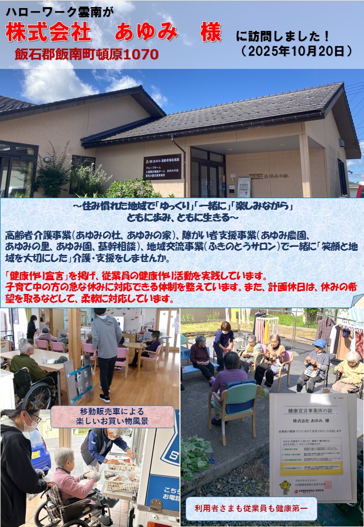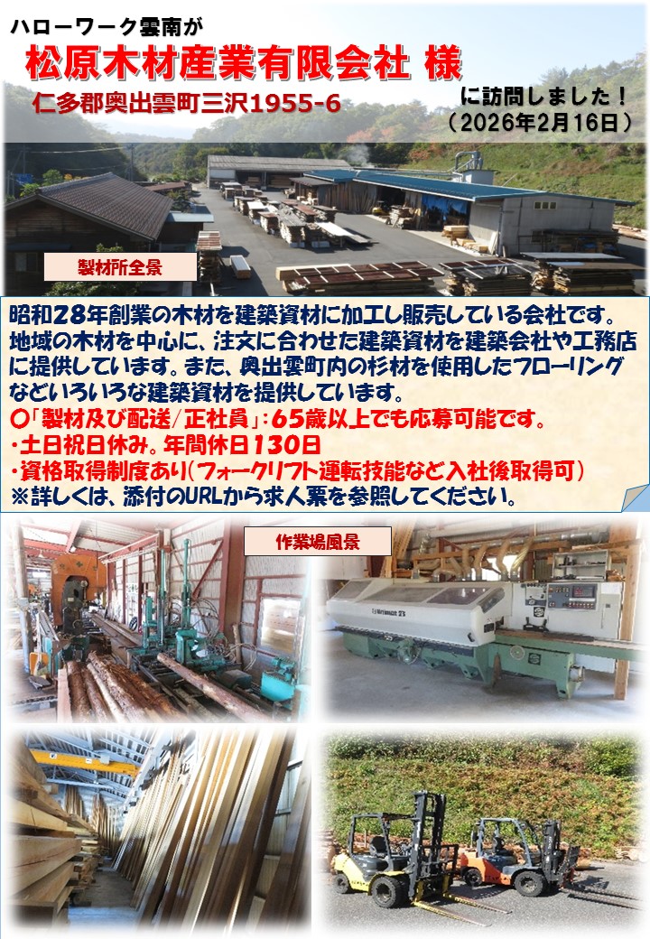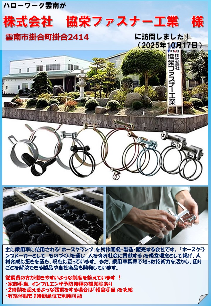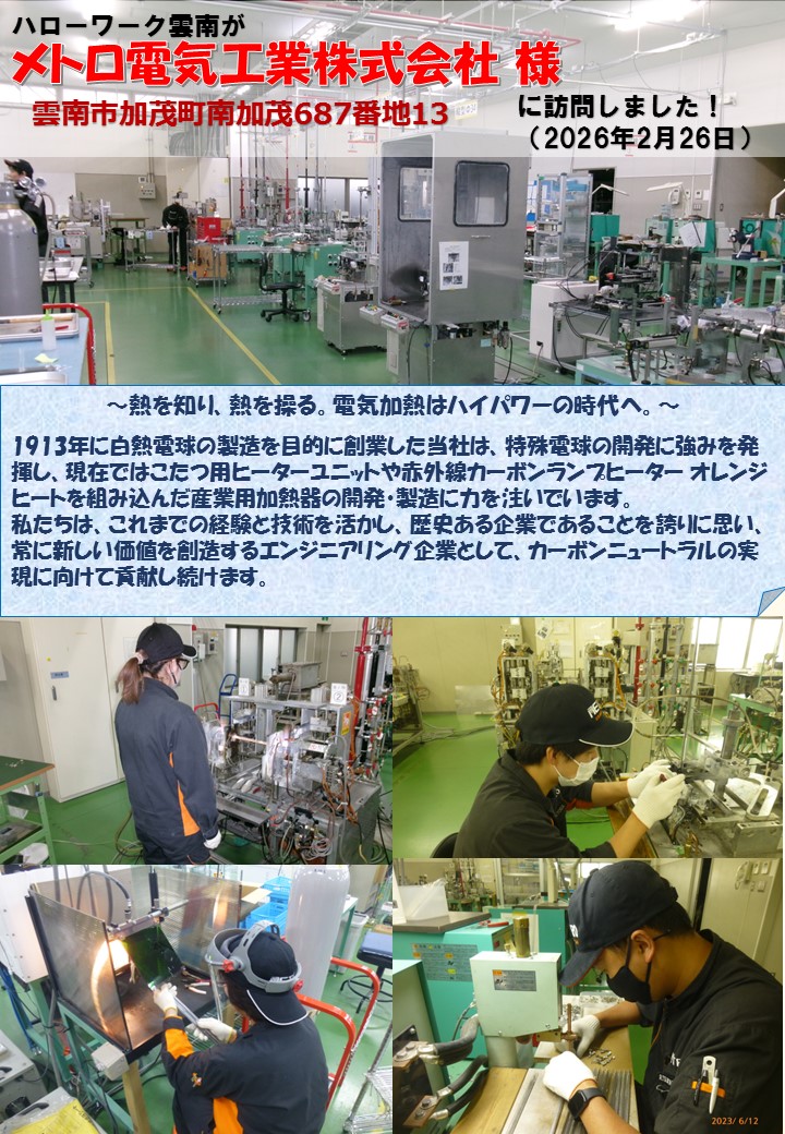 ハローワーク雲南では、従業員さんの働き方や福利厚生面など、企業ごとの特色を確認するために、定期的に事業所訪問を実施しています🎤🏢