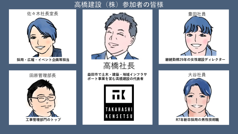 ―(岩見局長)高橋建設では、働き方改革につながる様々な取組がなされていますが、まず御社の経営において大切にしている考え方をお聞かせください。