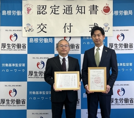 島根県内で22社目の『くるみん』認定、19社目の『えるぼし』認定となります。