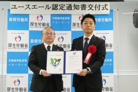 島根労働局では、令和8年1月30日にユースエール認定通知書交付式を行いました。