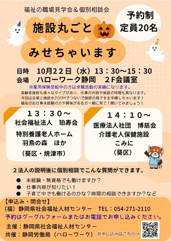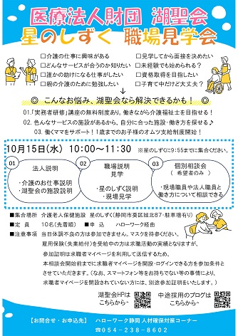 ☆福祉の職場見学会&個別相談会(10月22日に開催!) ☆病院のおしごと見学会(10月30日に開催!)