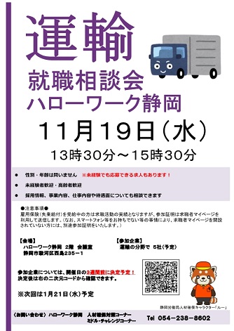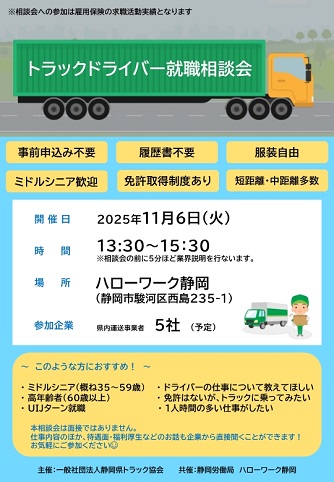 ☆運輸の仕事就職相談会(11月19日に開催!)