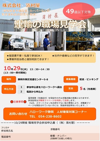 ☆運輸の職場見学会(10月29日に開催!) ☆トラックドライバー就職相談会(11月6日に開催!)