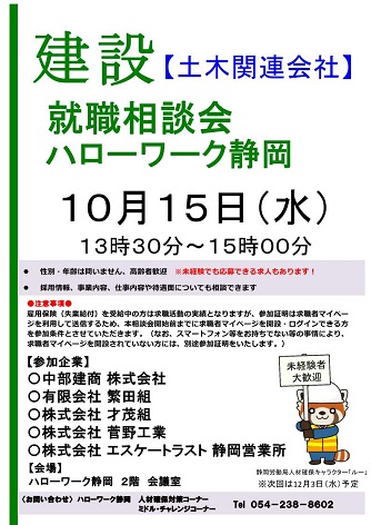☆建設の仕事就職相談会(10月15日に開催!) ☆警備の仕事就職相談会(10月28日に開催!)