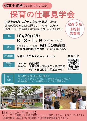 ☆福祉の仕事見学会(10月15日に開催!) ☆保育の仕事見学会(10月20日に開催!)
