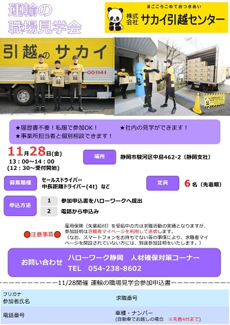 ☆運輸の職場見学会(11月28日に開催!) ☆建設の仕事就職相談会(12月3日に開催!)