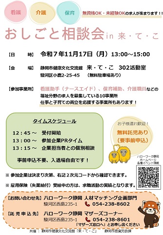 ☆おしごと相談会in来てこ(11月17日に開催!) ☆介護の仕事就職相談会(11月26日に開催!)