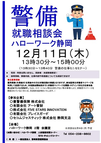 ☆警備の仕事就職相談会(12月11日に開催!) ☆おしごと相談会in来てこ(1月26日に開催!)
