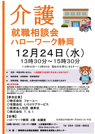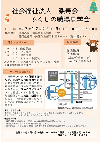 ☆ふくしの職場見学会(12月22日に開催!) ☆介護の仕事就職相談会(12月24日に開催!)