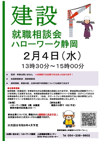 ☆おしごと相談会in来てこ(1月26日に開催!) ☆建設の仕事就職相談会(2月4日に開催!)