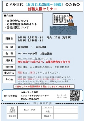 ・ミドル世代のための就職支援セミナー(1月~2月)(PDF)